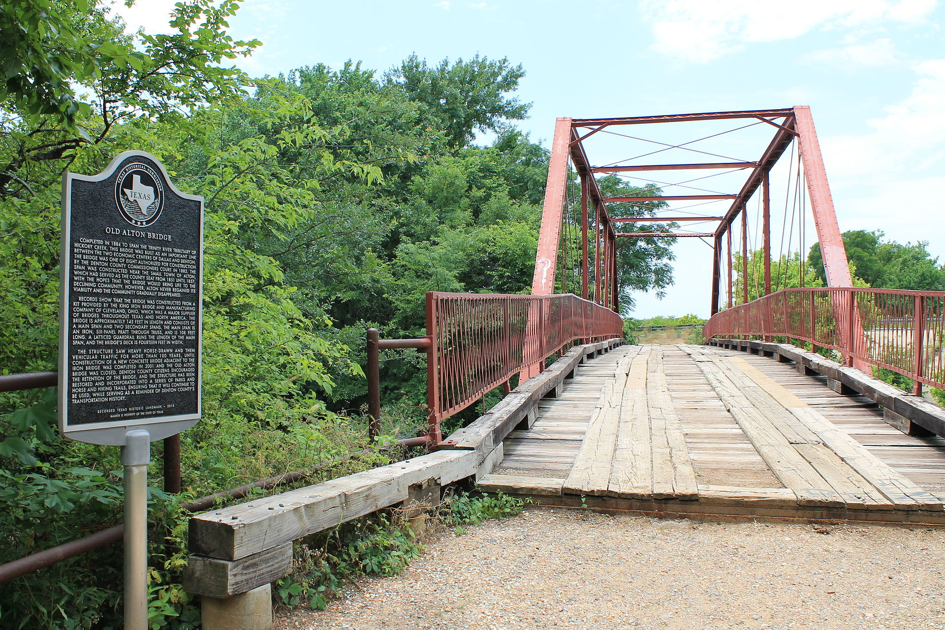 Built in 1884 by the King Iron Bridge Manufacturing Company, it connects the Texas cities of Denton and Copper Canyon. In it’s early days, it carried horses and early automobiles over Hickory Creek. The bridge is actually named The old Alton Bridge, getting its name from the also abandoned town of Alton as it was once the base of Denton County.
